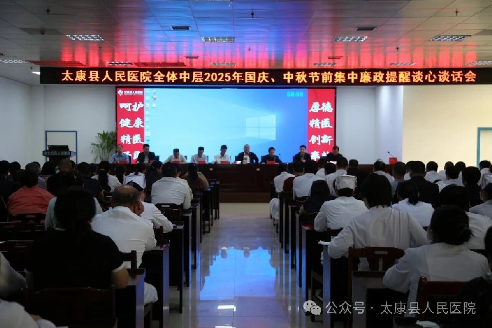 在国庆、中秋双节来临之际,为深入贯彻落实全面从严治党要求,强化廉洁自律意识。9月28日下午,太康县人民医院组织召开班子成员、全体中层国庆、中秋节前集中廉政提醒谈心谈话会。会议由院长张向东主持,全体班子成员、全院中层干部参加会议。
