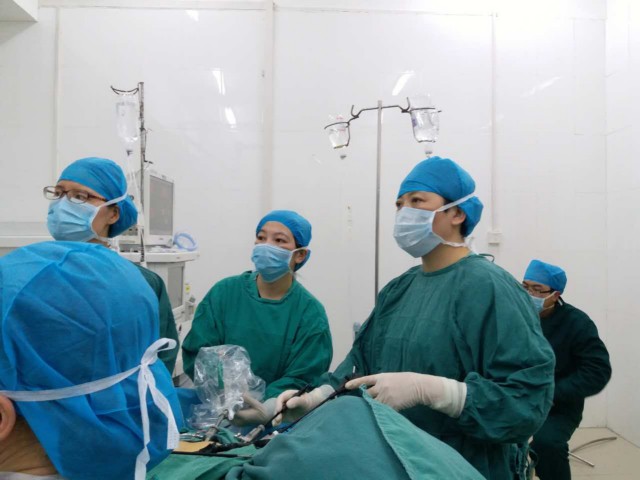 解放军第一五五医院妇产科主任黄春梅指导手术
