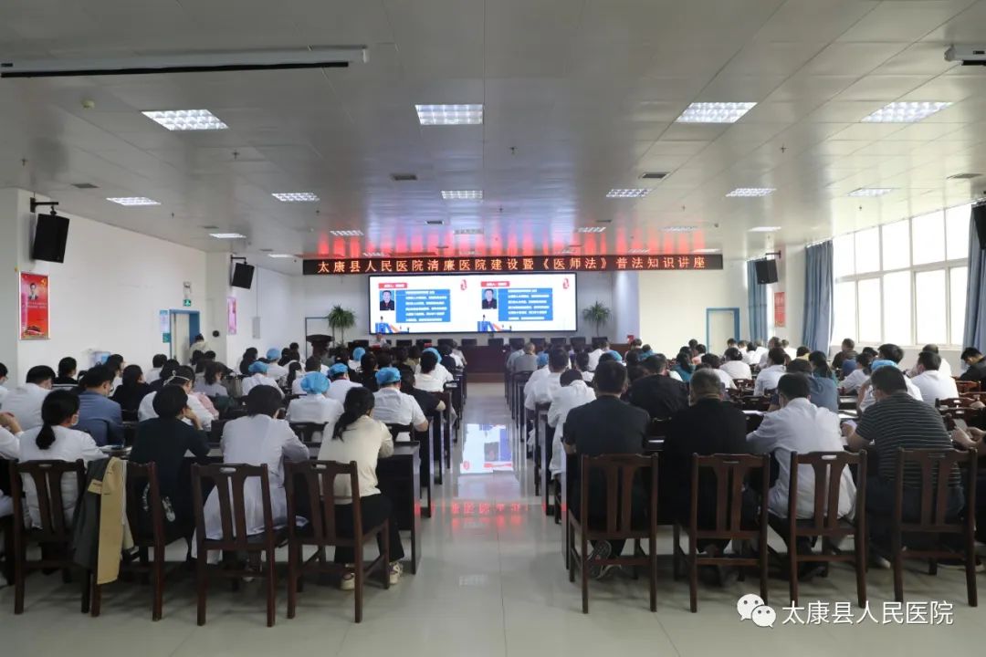 为保障医师合法权益,规范医师执业行为,加强医师队伍建设。9月23日下午,太康县人民医院在大会议室举办清廉医院建设暨《医师法》普法知识讲座。全体班子成员、各临床、医技科室主任、副主任、护士长,职能科室科长、副科长,全体医生(值班医生除外)参加培训。会议由副院长李琪主持。