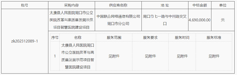 | 2、采购项目名称:太康县人民医院周口市公立医院改革与高质量发展示范项目智慧医院 建设项目 |