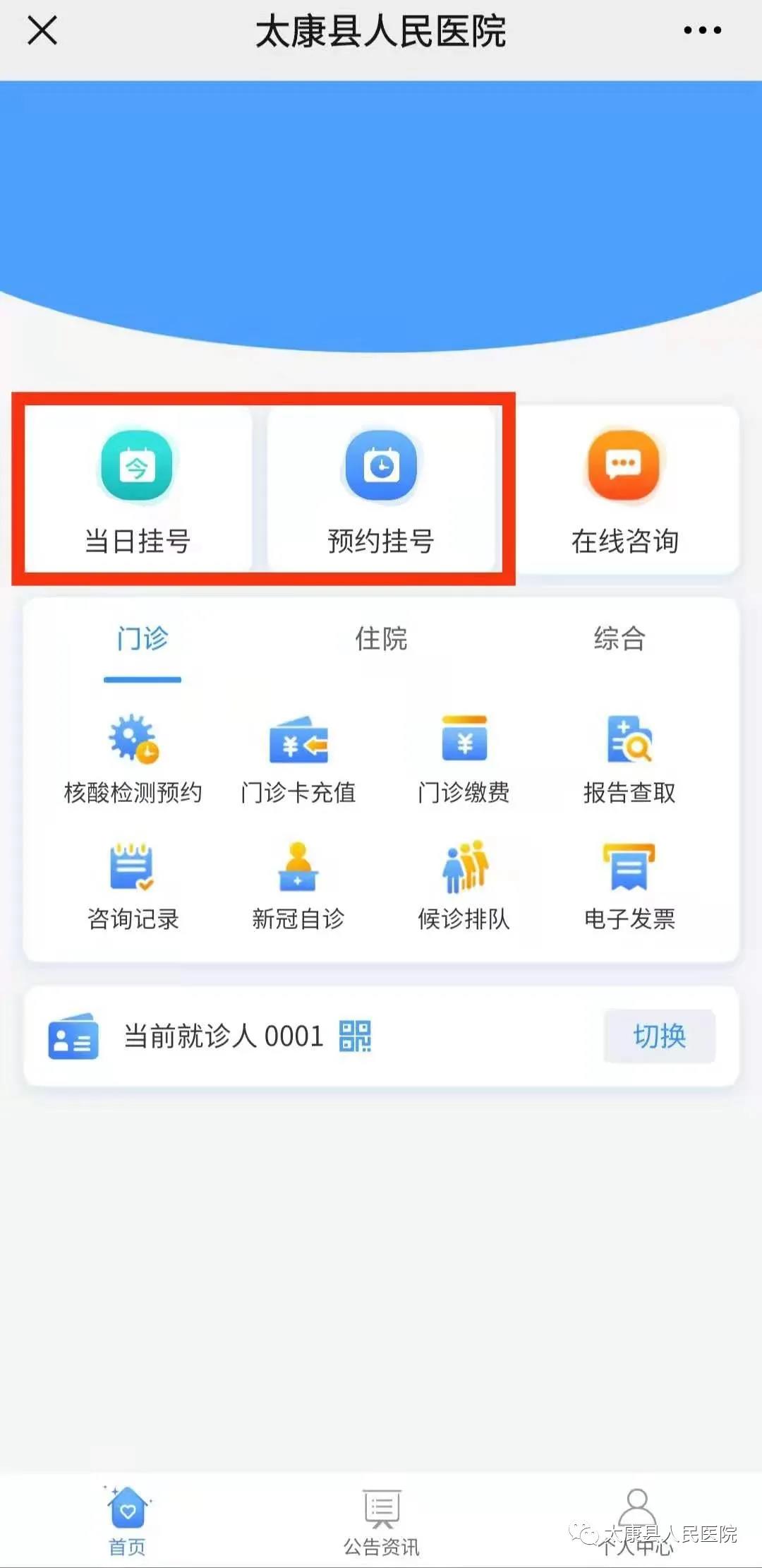 您可以通过微信搜索并关注“太康人民医院服务号”或者识别下方二维码,按照以下指示操作就能通过微信端预约挂号了。