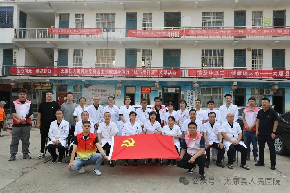 在第八个中国医师节来临之际,一份特别的关爱在晨曦中传递。8月12日清晨6点,由太康县人民医院党委办牵头,内科第一党支部、内科第二党支部、外科第一党支部、外科第二党支部的党员、预备党员、考察对象、积极分子,携手工会及党外知识分子志愿者,走进“爱心粥屋”,开展主题为“医心向党·清凉护航”的义诊活动,用实际行动为辛勤的环卫工人送上健康关怀。