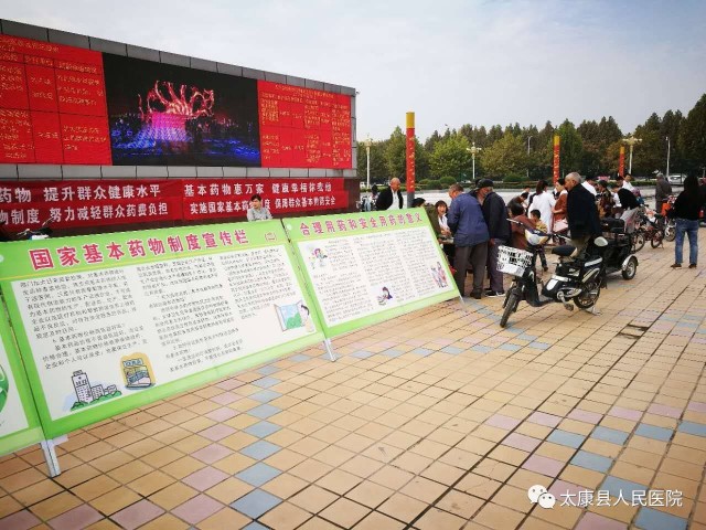 太康县人民医院作为一所国家二级甲等综合医院,我院致力于服务社会民生,全心全力为群众健康提供优质、安全、便捷的医疗服务。此次在“积极落实执行国家基本药物制度”及其宣传方面,积极与相关部门协调,让宣传活动走出医院、走向群众集中的公共场所,把“基本药物合理使用宣传月”活动推向深入,让更多的群众了解国家基本药物制度,通过合理用药宣传,提高群众安全用药意识,认识并掌握科学的用药方式和方法,进而减少药害事件的发生。