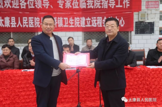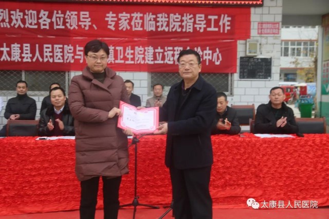 在授牌仪式上,与会领导共同为太康县人民医院“医共体”成员单位板桥镇卫生院板揭牌。太康县人民医院与板桥镇卫生院组建“医共体”后,将加强重点专科对口扶持、双向转诊、加强对卫生院的技术指导和人员培训,提高卫生院诊疗水平,为人民群众提供安全、有效、方便、价廉的基本医疗服务。