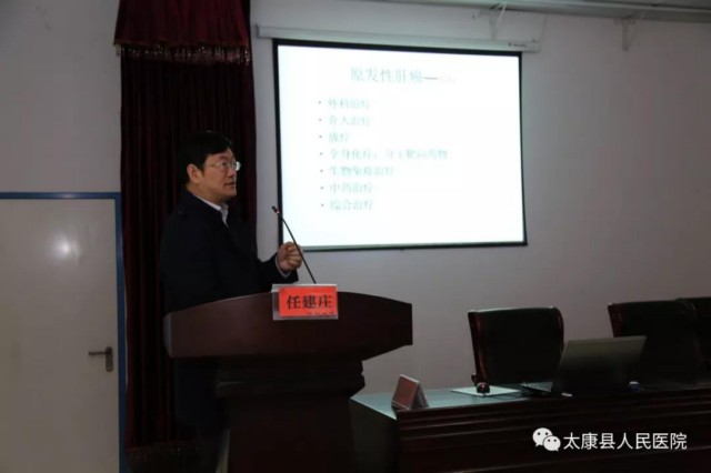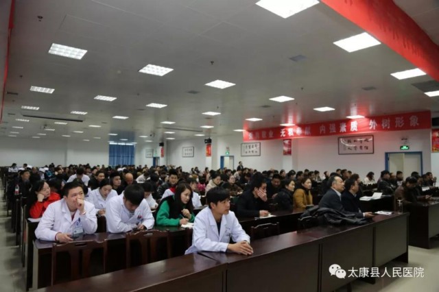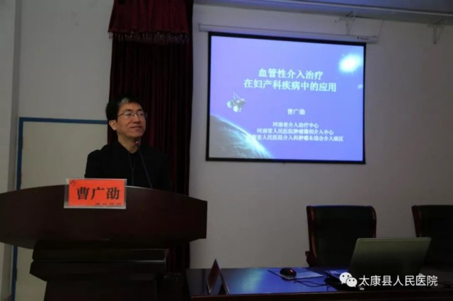 河南省医学会介入治疗学专业委员会主任委员、河南省肿瘤医院放射及微创介入科主任黎海亮教授,河南省肿瘤医院郭晨阳教授,郑大一附院任建庄教授、河南省人民医院曹广劭教授,河南省肿瘤医院李靖教授,周口市中心医院张宪亮教授,县卫计委副主任李治国、医政股股长李海风,我院副院长李中奇、院长助理刘德超出席会议。会议由李治国副主任主持,来自全县各医疗系统的医疗同仁及我院医护人员等共400余人参加了此次培训会。