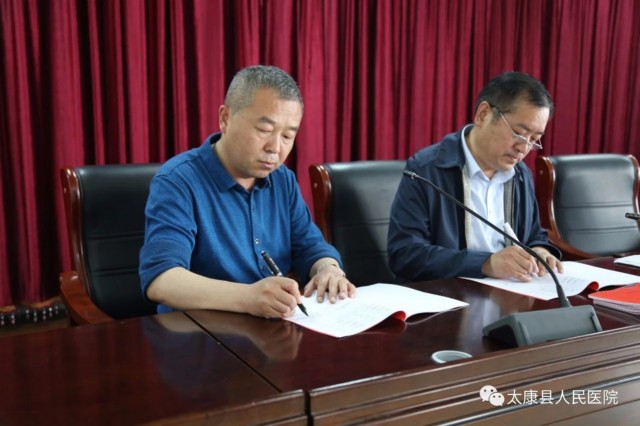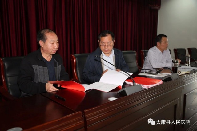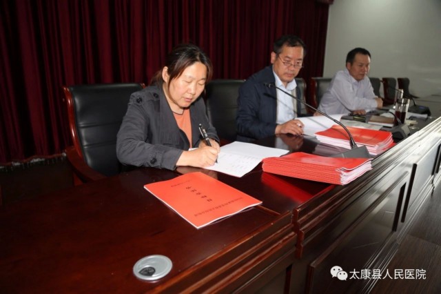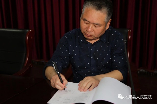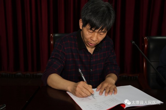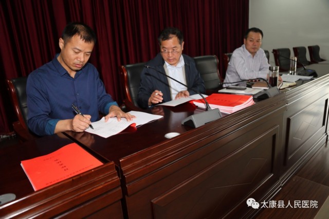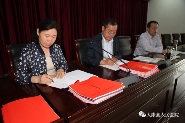 4月26日下午,太康县人民医院2018年度临床科室目标责任书签订仪式在南院区门诊楼四楼学术中心举行,院长聂方华、副院长孙传顺、院长助理刘德超出席会议,各科室主任、护士长参加会议,会议由孙传顺副院长主持。