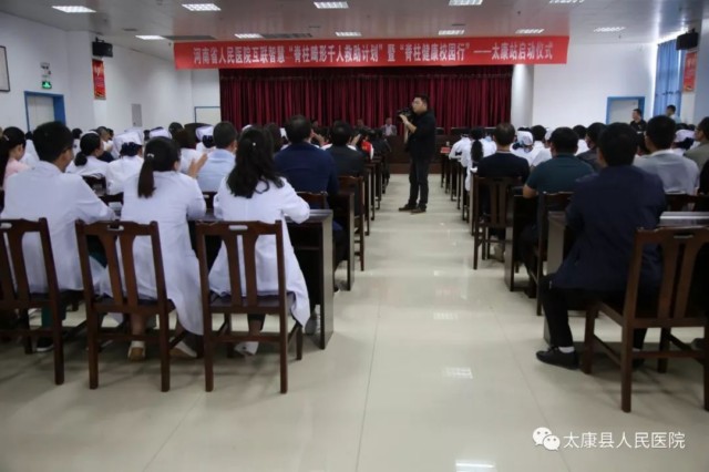 9月26日上午,河南省人民医院互联智慧“脊柱畸形千人救助计划”暨“脊柱健康校园行”太康站启动仪式在我院顺利举行。此次扶贫救助活动是通过开展对青少年免费进行脊柱侧弯筛查及科普知识巡讲,对贫困强直性脊柱炎活动期患者进行治疗费用减免或补贴等多项措施,关注青少年脊柱健康,降低青少年颈腰椎疾病发病率,为构建健康中国和助力脱贫攻坚战做出了积极有益的贡献。我院也将做好全县青少年科普知识和脊柱畸形的诊疗工作,助力脱贫攻坚,为全县人民群众的脊柱健康和生活质量保驾护航!