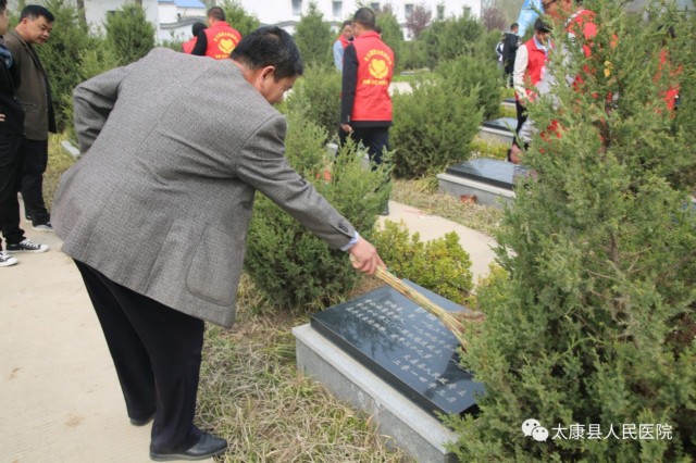 青山埋忠骨,史册载功勋。革命先烈浩气长存、万古流芳、永垂不朽!他们永远活在我们的心中。作为医护人员,我们要努力传承革命先烈伟大的爱国主义精神和敢于担当的责任意识,要倍加珍惜革命先烈用鲜血和生命换来的美好生活,用精湛的医术为人民服务,努力提高知识素养和业务能力,更好地为太康县患者服务,更好地为我县老百姓服务。