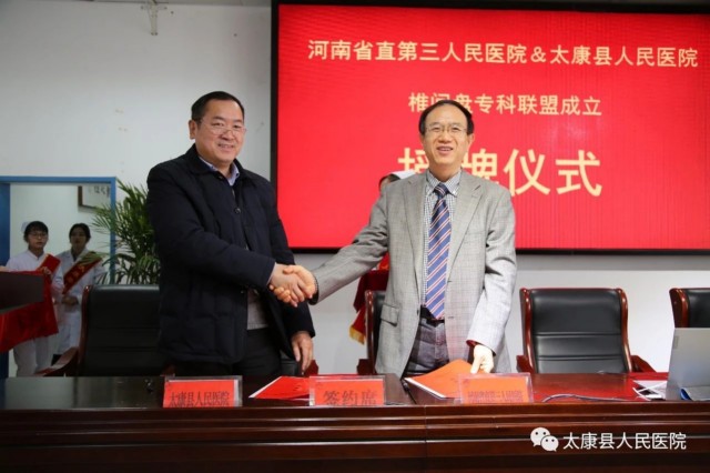 “椎间盘病诊疗中心是省直三院专病专科建设最大亮点,主要专注椎间盘病的微创治疗,在技术引进和创新上成绩巨大。为推动脊柱微创技术普及,让更多患者受益,我院发起成立全国椎间盘专科联盟,已有12省76家成员单位。太康县人民医院肩负着全县人民健康的重任,今天太康县人民医院与河南省直第三人民医院椎间盘病中心结为专科联盟,是太康县人民医院在践行公立医院为人民群众的健康保驾护航的责任。河南省直第三人民医院作为专科联盟的会长单位,定会肩负起其责任,为其进行人才培训、技术支持,实现联盟内的资源共享,为广大人民群众提供更优质、便利、高效、安全的医疗服务。”