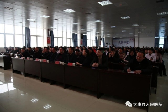 河南省直第三人民医院业务院长袁启东、联盟办公室主任党爱军、椎间盘中心副主任李芳、青年专家李宽,太康县卫健委副主任徐振德、医政股股长李海风,太康县人民医院党委书记、院长聂方华带领全体班子成员出席会议。全县各级医疗机构基层乡镇医生代表及本院全体中层干部、全体医生参加了会议,会议由我院副院长张向东主持。