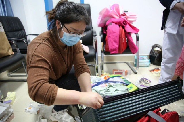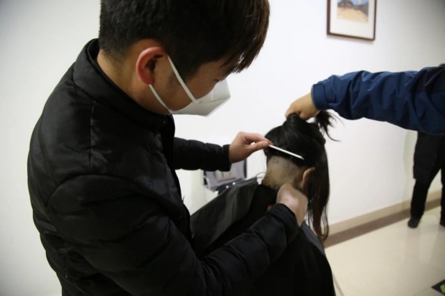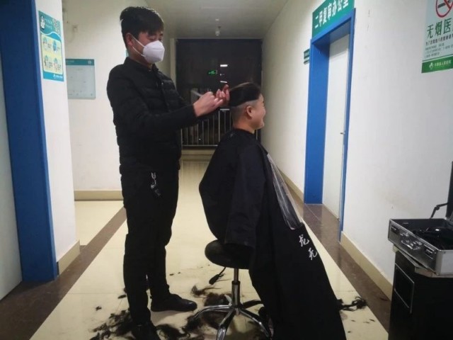 随后援鄂医疗团队在同事及亲朋好友的帮助下开始整理行李,爱美的姑娘们为了减少污染机会、节省防护物资忍痛剪去了一头青丝(感谢龙龙美发献爱心为出征队员免费剪发)。