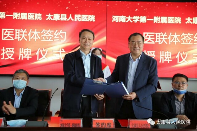 4月30日上午9时,河南大学第一附属医院、太康县人民医院“医联体”签约暨授牌仪式在太康县人民医院南院区门诊部四楼学术报告厅隆重举行。