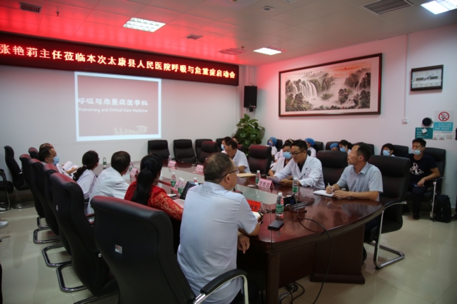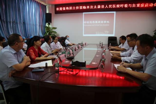 我县按照政府主导、单位自愿和双向选择的原则,根据服务人口、参保人数以及各单位服务能力(医技、设备、床位等)情况。为加快与完善我院呼吸与危重症医学科达标进度,在8月21号我院由张向东副院长牵头,邀请周口中心医院呼吸科张艳莉主任为我院启动呼吸与危重症医学科建设。本次参会科室有呼吸科、ICU、RICU、肿瘤科、CCU等科室。