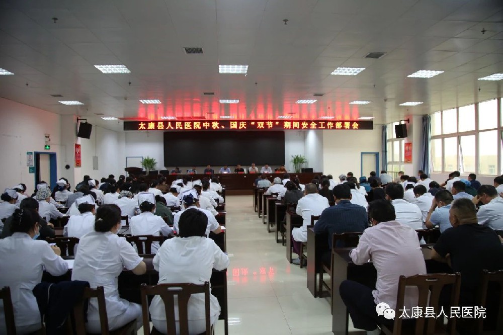 会上,保卫科科长常红磊对中秋、国庆节安全生产隐患排查出的问题隐患进行了汇报;副院长肖志刚宣读《周口市卫生健康委员会关于认真做好中秋、国庆期间安全生产工作的通知》文件。