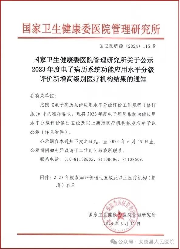 2024年6月11日,国家卫生健康委医院管理研究所发布2023年度电子病历系统功能应用水平分级评价结果。