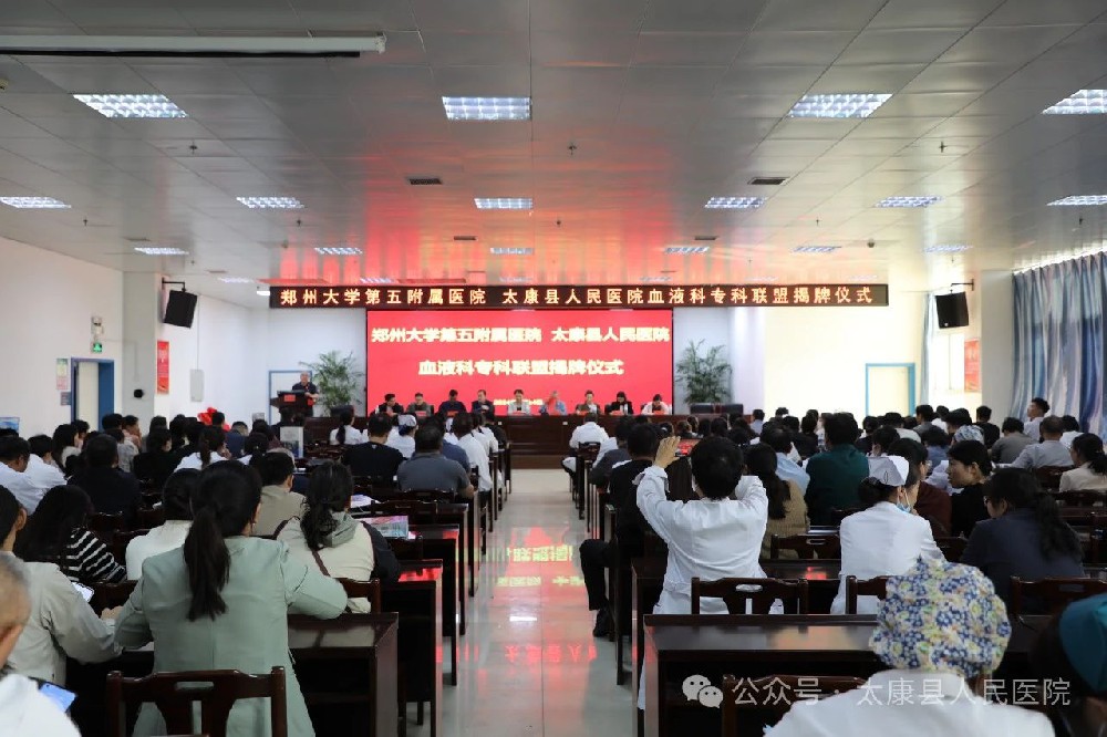 为整合优势资源,提高血液病诊疗水平,为广大患者提供更加专业、高效的医疗服务。9月24日上午,郑州大学第五附属医院与太康县人民医院血液科专科联盟揭牌仪式在我院大会议室顺利举办。
