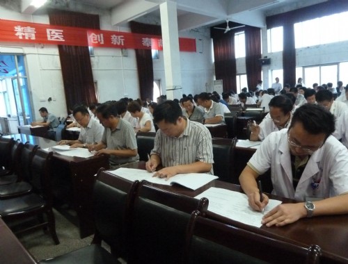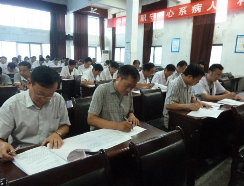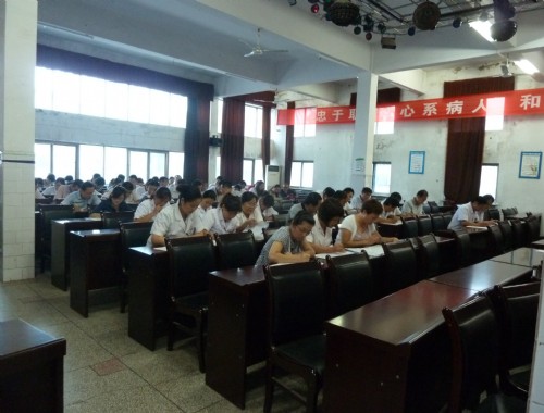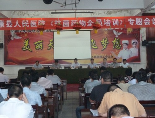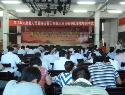 我院于2012年8月9-10日下午特邀我县卫生局医政股股长许明慎来我院就抗菌药物临床应用规范化管理进行了全员专题培训。并于8月13日下午就本次培训知识掌握情况进行答卷考试。