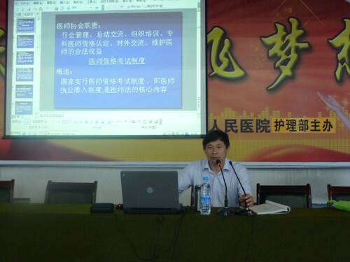 为加强新上岗人员爱岗爱院和职业道德教育 ,推进医院年青人才队伍建设,我院在行政楼二楼会议室举行了新上岗人员岗前综合培训,此次培训从7月12日至7月15日为期5天。由李照奎书记主持,培训老师为院领导和职能部门负责人,培训人员为近五年分配我院的医疗、医技、护理等人员220名。内容涉及劳动纪律、规章制度、医务人员道德规范、医院文化建设、法律法规、医疗、护理核心制度、病历书写规范、急救知识等多个层面。涵盖面广,课程安排紧凑。医院特邀我县卫生局医政股长许明慎主讲了《执业医师法》、《护士管理条例》、《医疗事故处理条例》、《抗生素合理应用》。每次培训结束后对培训情况进行检查现场发卷考试,要求人人达标。