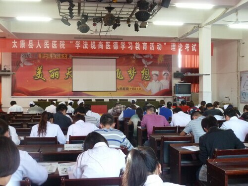 2013年10月12日为提升我院广大职工法规、医德综合素养,我院举行“学法规、尚医德”学习教育活动,并在活动后参加统一理论考试。