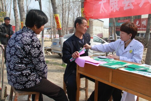 今天,在副院长孙传顺的带领下,组织了内一科专家刘学强主任、内四科专家刘玉春主任到我县老冢镇干张行政村举行大型义诊活动,为百姓送医送药、免费体检、测量血压,发放健康知识宣传页五百余份,得到了广大农民群众的一致好评。