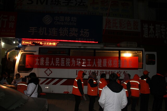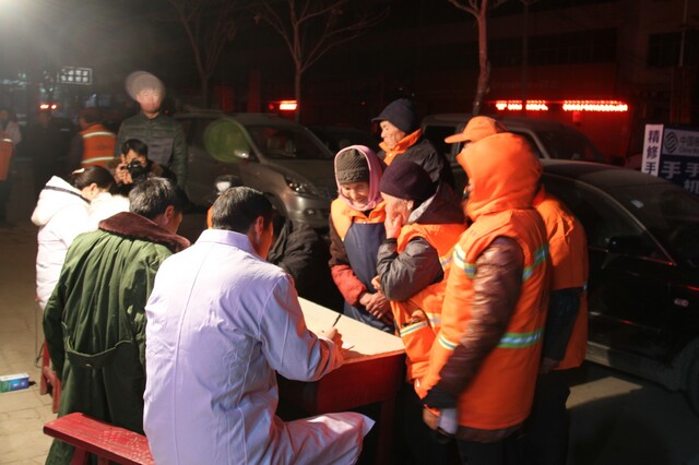 12月19日清晨我院组织医护人员为我县环卫工人进行免费健康体检
