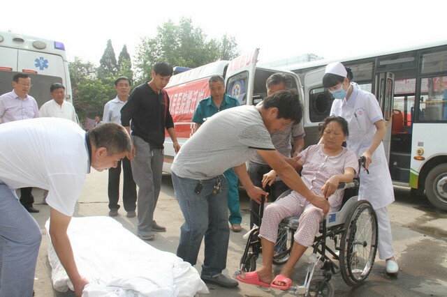 在搬迁过程中,院长聂方华带领院领导班子及各职能部门负责人亲临现场指挥,患者及家属全力配合,整个搬迁过程有条不紊。“在转运过程中,必须首先保证病人安全。”我院院长聂方华说。“把病人按照病情分类:病情较轻的病人由家属陪同乘坐公交车;危重病人由急救车统一转运,确保一车一人一医一护。沿途由交警指挥交通,确保搬迁车辆通行顺畅。转运病人过程中,从病人登车、下车到入住病房,都有人员负责接收、转运、安排协调,每一个病人上下车时,都会进行登记,随后由医护人员陪同患者入院,进入病房后进行再次核实,确保病人准确到位。”