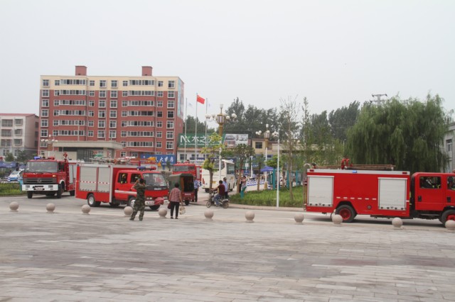 3分钟过后,消防大队全体作战力量迅速赶到火灾现场:太康101(五十铃抢险救援消防车)北门、太康102(五十铃水罐消防车)西侧路边、太康103(豪泺抢险救援车)南门、太康104(东风康明斯水罐车)西侧路边、太康105(天龙高喷车)南侧路边。按照作战命令迅速展开战斗,组织一个灭火攻坚组深入火场内攻近战,一个救人小组疏散营救被困人员和一个排烟小组进入内部排烟降温。