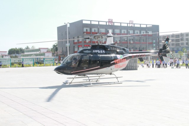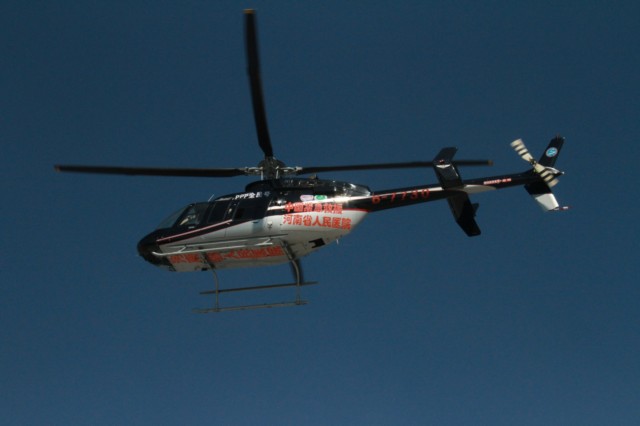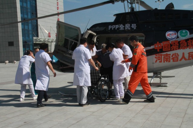 伴随着直升机的轰鸣声,载有转诊患者的河南省人民医院的“空中急救车”出现在医院上空。
