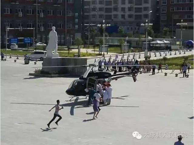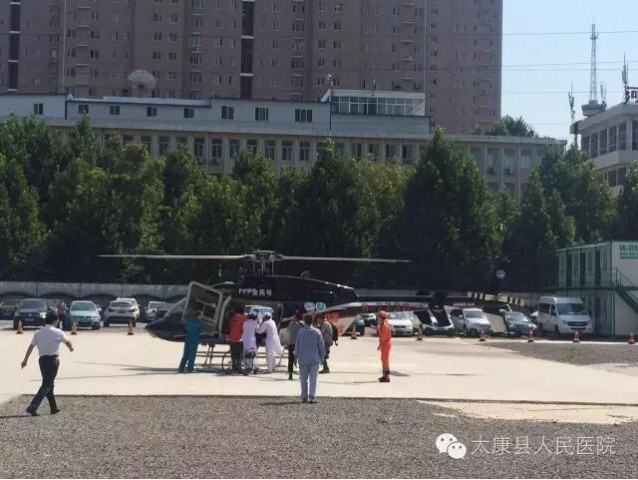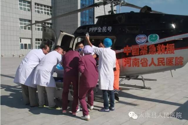 省人民医院迅速派出中国紧急救援河南航空救援基地直升机飞往太康。15点10分,“空中120”顺利降落在我院新院区门诊楼前广场,并将我县一位需进一步康复治疗患者朱口镇张xx下转至我院,15点30分危重病人曹xx顺利登机,40分钟后顺利抵达河南省人民医院重症ICU进行救治,为抢救患者生命赢得了宝贵时间。