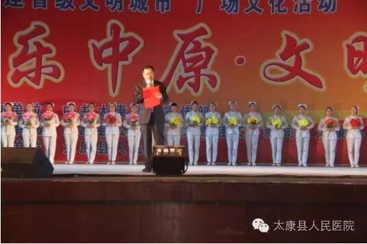 聂方华院长在晚会现场慷慨致辞:“为加快文明城市创建,丰富广大群众精神文化生活,共建和谐文明社会,在这秋风送爽,举国欢庆的美好时节里,我们在这里相聚,唱响欢乐中原,希望我院专场演出,为文明太康创建添砖加瓦,为大家奉献一场“文明、热烈、精彩、圆满”的盛会。”并代表全院干部职工,向一直以来关心、支持太康县人民医院的各级领导和各界人士表示衷心的感谢!